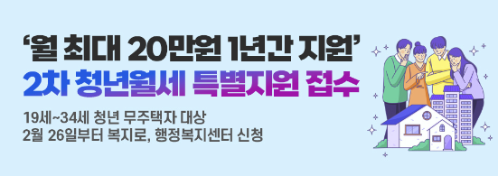 - 지원대상: 만19 ~ 34세 이하 부모님과 별도 거주 무주택 청년(*청약통장 가입 필수)